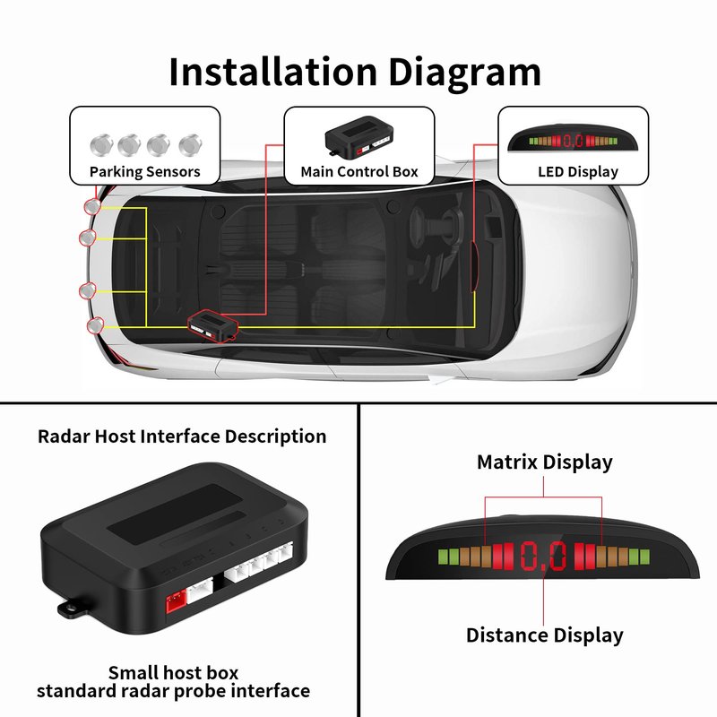 - 【High Quality Parking Radar】This Car Parking Radar System consists of 4 Ultrasonic sensors, digital control box, and LED display, making the job of parking any vehicle much easier.