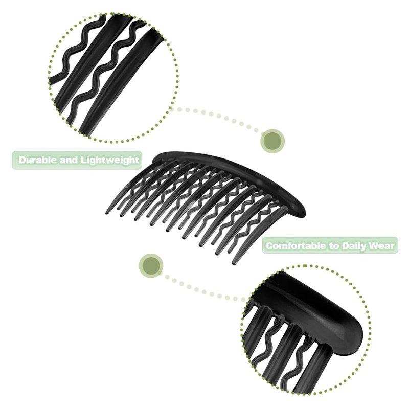 - Flexible Design:Curved design is practical to use,lightweight and comfortable to wearThere are 17 teeth on each comb, it is very suitable for people with thin hair,this comb will fix the broken hair very firmly.