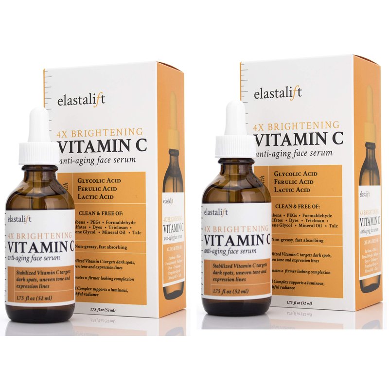 Elastalift Vitamin C Facial Serum For Age Spots, Wrinkles, & Expression Lines. Anti-Aging Face Serum W/Vitamin C & Hyaluronic Acid Brightens Skin To Promote Healthier Skin Complexion (2-Pack)