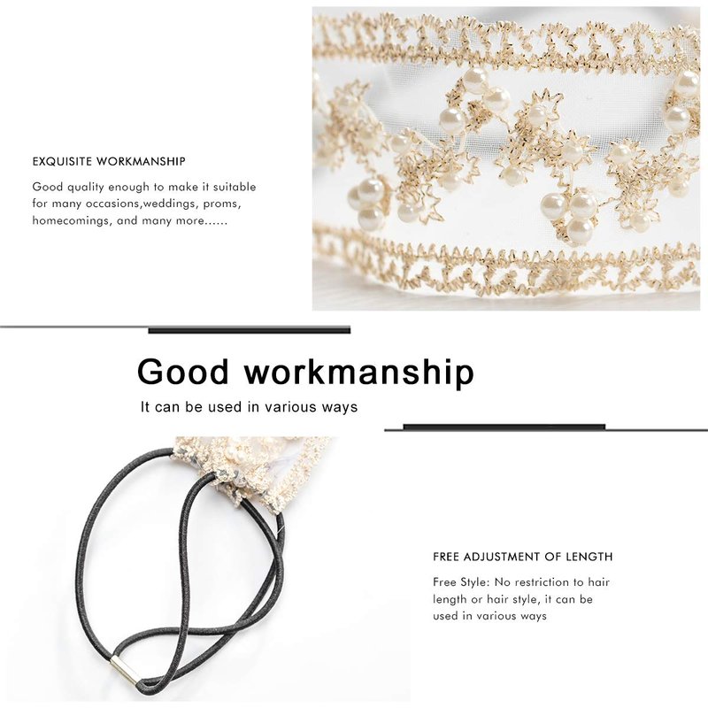 - HIGH QUALITY MATERIAL:Our Elastic Hairbands Rope is made of soft base with fancy rhinestones and beads.The shining clear rhinestones and silver-tone beads will dazzle people's eyes while ivory lace ribbon adds a touch of elegant.