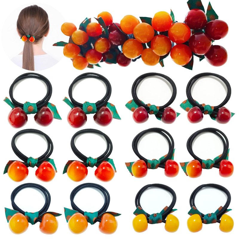 - Cute and Realistic -- With these ponytail holders,the cherry's size,color,shape and even weight are all like a real cherry. Super cute, doesn't pull on your hairs. Also looks great on the wrist as bracelets. A gift for yourself and friends.The hair bands are soft, also they are stretchy enough to tie easily and you can remove it easily without much tugging on hair.