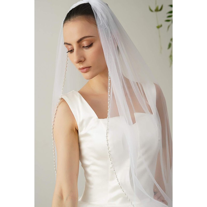 - Made of softest Swiss tulle and handmade sewed crystal beaded and pearls.The tulle won't smell,not easliy wrinkled,feel smoothly