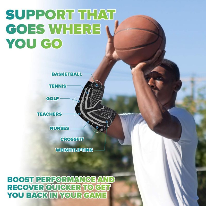 - Elbow Support for Any Sport or Workout: Take your athleticism and fitness to the next level with an elbow brace. Perfect for tennis, weightlifting, baseball, golfing, and basketball.