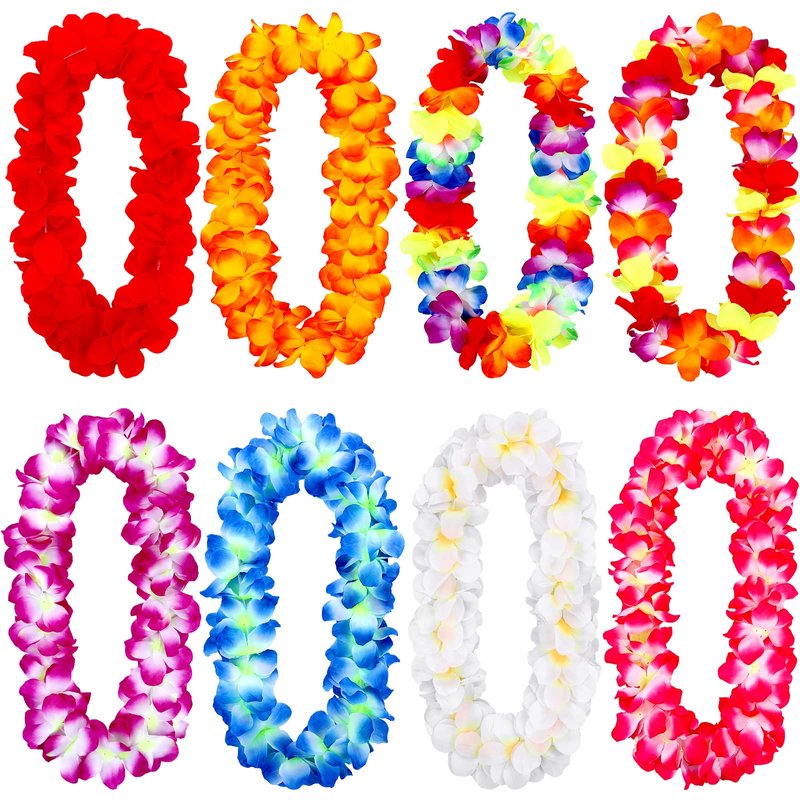 Elcoho 8 Pieces Thickened Hawaiian Leis Necklace Hawaiian Floral Leis Bulk Hawaiian Garland Luau Party Supplies and Summer Party Decorations