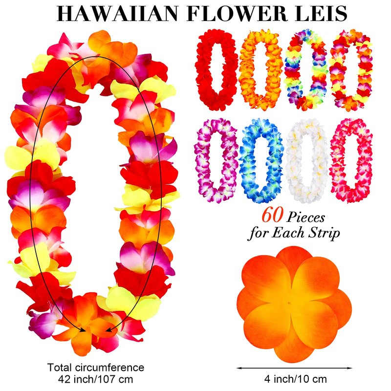 - Extra-large size: the total circumference of the Hawaiian wreath is 42 inches/107 cm and each petal is about 4 inches/10 cm in diameter, large enough to attract people's eye