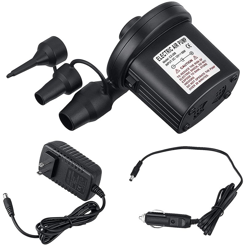 - 3 nozzles for multiple devices - allow you to inflate/ deflate different interface. This air pump can be used with airbed, inflatable pool/boat/sofa/bathtub/water bed/swim rings/Exercise balls