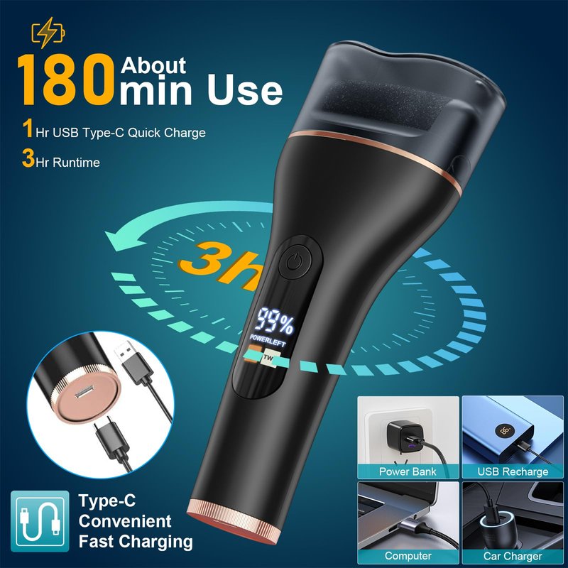 - 【QUICK CHARGE -- LONG LASTING AND DURABLE】High quality electric foot file is equipped with 1200mAh high capacity lithium battery, USB quick charge can be filled in 1-2 hours, can be used for about 180 minutes, charging once, can be used for many times. LCD display shows speed and power status, the foot care device in the work of dead skin remover will automatically light up the indicator light, Provide illumination for the targeted dead skin area, comfortable and convenient to use.se.