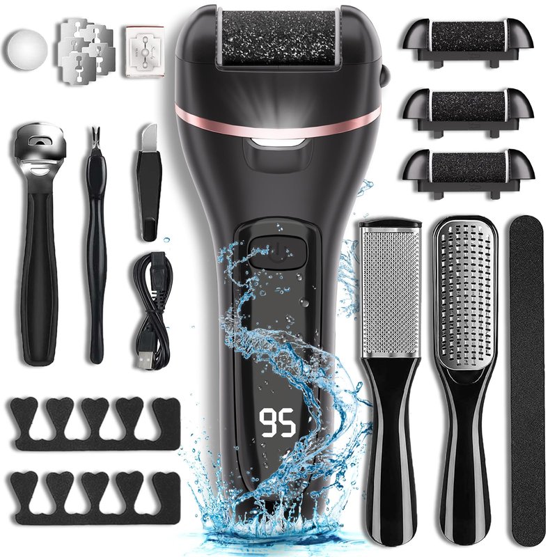 This kit comes with everything you need to get the softest feet of your life! It has an electric callous remover with interchangeable heads of different grits. It has various hand files and some other tools you may need.