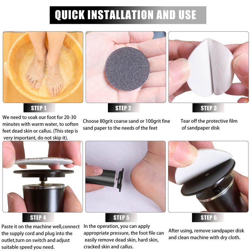 - 60pcs configuration allows you to replace the sandpaper disc without worry. Family members can share an electric foot callus remover.
