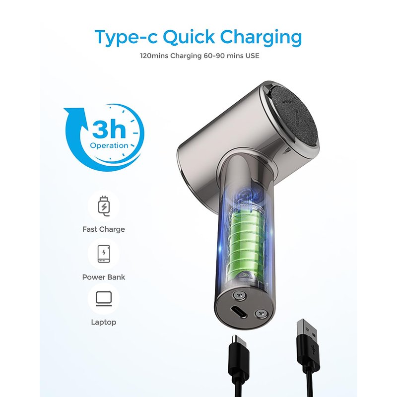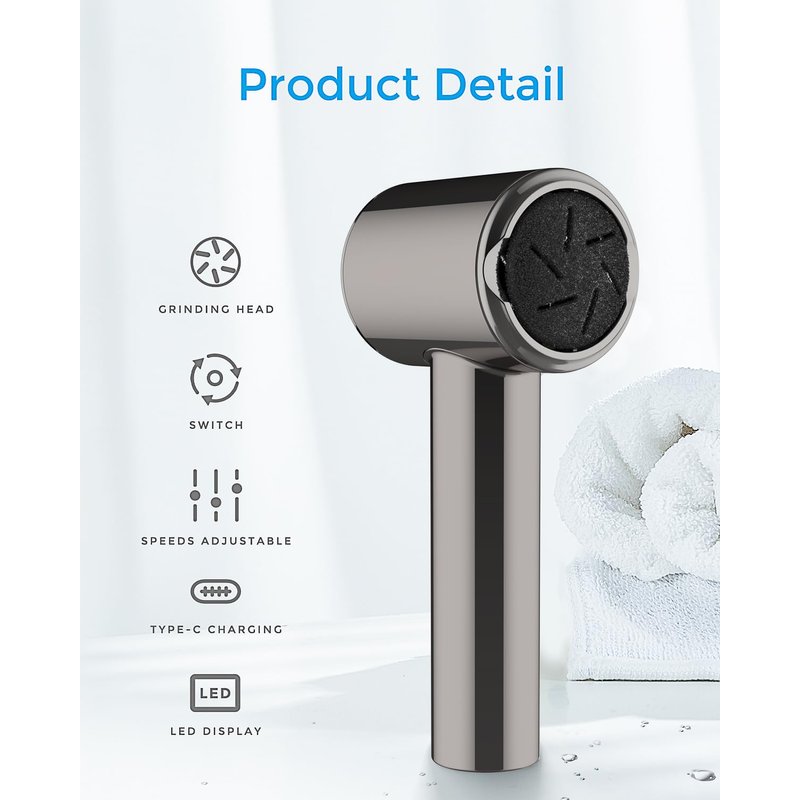 - WATERPROOF BODY: Revolutionary waterproof technology inside the body, full body stylish metal shell design with IPX6 waterproof rating. With the included USB charging cable, the Foot Dead Skin Remover can be easily charged using your laptop, power strip, outlet, etc. Say goodbye to AA batteries!