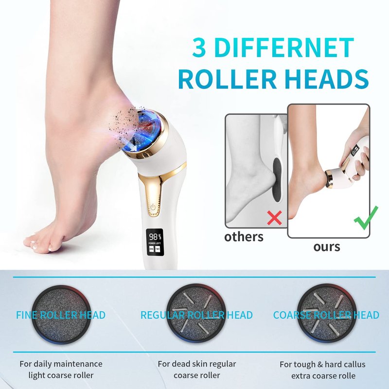 AMPK Electric Feet Callus Removers,Electronic Foot File Rechargeable Waterproof 3 Rollers,Professional Pedicure Tool for Feet,Removes Hard and Dead Skin Callus Foot Care Perfect,Electric foot file with vacuum