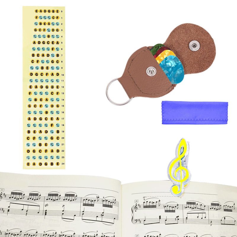 - 【ELECTRIC GUITAR STRING SETS AND TOOLS:】 Come with 3 full sets of electric guitar strings (each set has 6pcs strings) and useful tools, including 1pc guitar tuner, 1pc guitar restringing tool(3 in 1), 1pc guitar capo, 10pcs guitar picks, 1pc small bag for picks, 1pc cleaning cloth, 1pc guitar fret board Scale Sticker, 1pc music book clip.