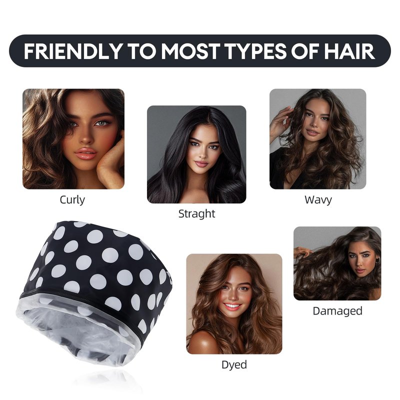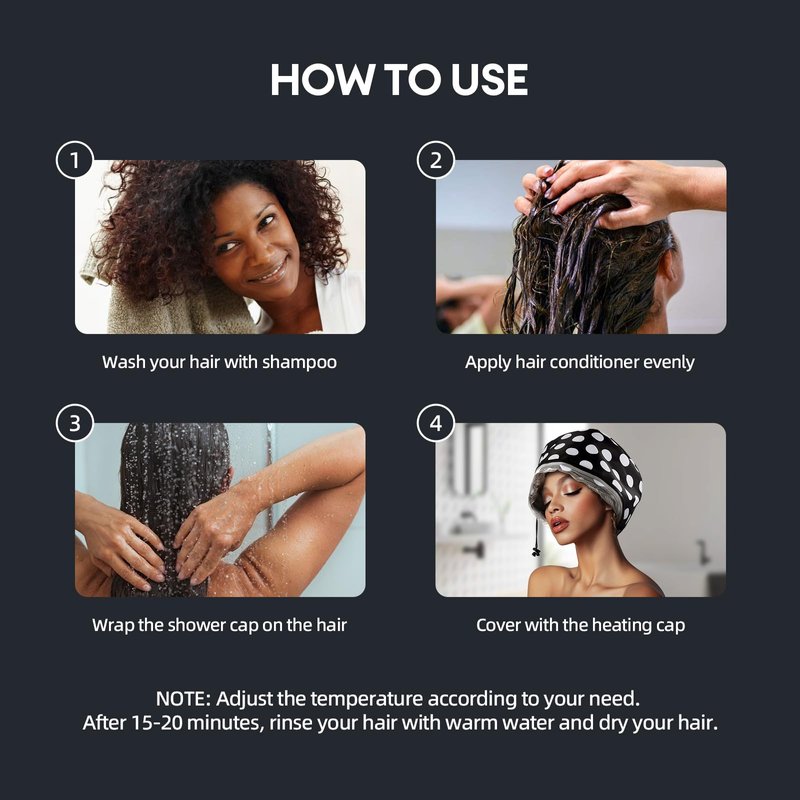 Electric Hair Steamer Cap with 2 Mode Temperature Control, Removable Washable Thermal Spa Hat for Home Hair Care (Black & White)