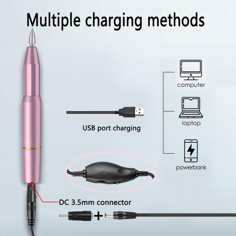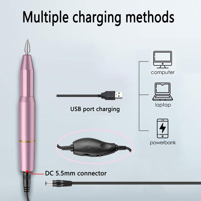 Electric Nail Drill Power Cord, USB Charger Power Cord Compatible with AIRSEE/ OVX/ ALLES/ AUTENPOO/ COSITTE/ MelodySusie/ KITCCI Portable Electric Nail Drill 5.5/3.5 Adjustable Speed and Direction