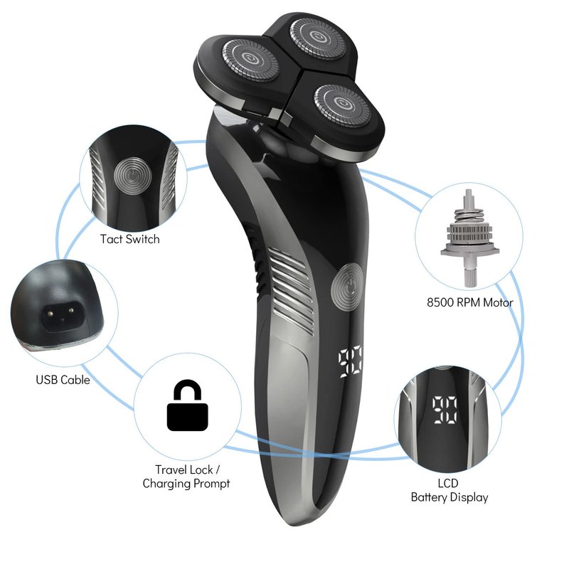 - ❤LCD Display - The LCD indicator reminds you to look into the electric razor's status at any point in time when the battery needs to be recharged and the shaver needs to be rinsed..The child lock indicator will light up when it is locked for safety.