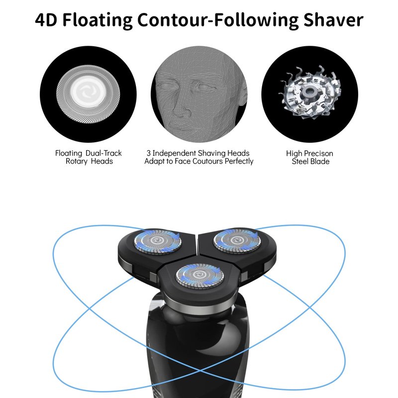 - ❤4D Skin Protection Shaver Heads - Siwiey electric shavers equipped with 3 round heads which move comfortably across the skin without any damage and could efficiently trim long stubble or coarse beard.