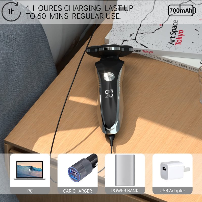 - ❤Powerful Rechargeable Battery - 1 hour charge could last for 60 mins regularly use. 700 mAH lithium battery providing the flexibility and convenience to shave anywhere, anytime.