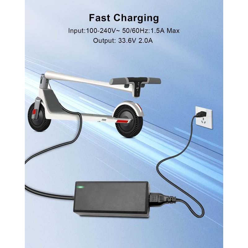 Electric Scooter Charger Compatible with Unagi Model One E350 E500 Scooter, nput:100-240V~ 50/60Hz:1.5A Max, Output: 33.6V 2.0A