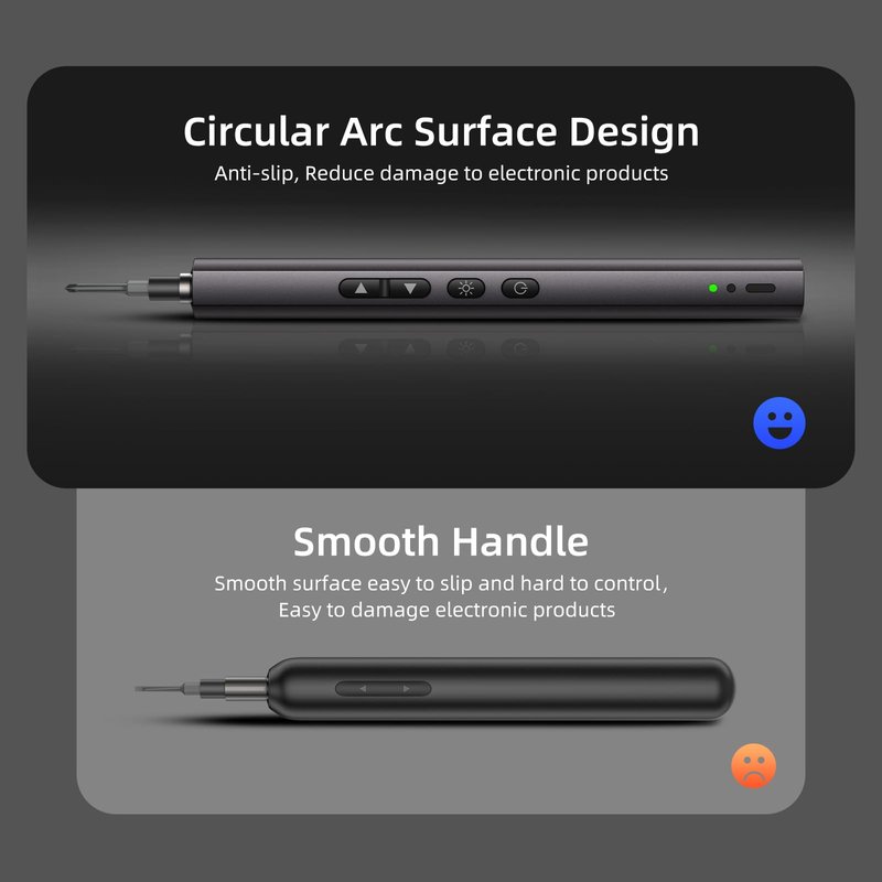 - Anti-slip Handle Design: The electric screwdriver handle is designed with an anti-slip pattern, making it easier for you to grip and more comfortable to use.