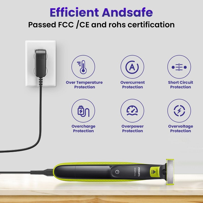 Applicable models: 4.3V 70mA Charger power cord Fits for Philips Norelco OneBlade QP2520, QP2520/90, QP2520/72, QP2520/70 trimmer electric shavers. The 4.3V charging cable designed for Philips Norelco Oneblade shavers QP2520. 4.3V charger Replace the original A00390 charger.