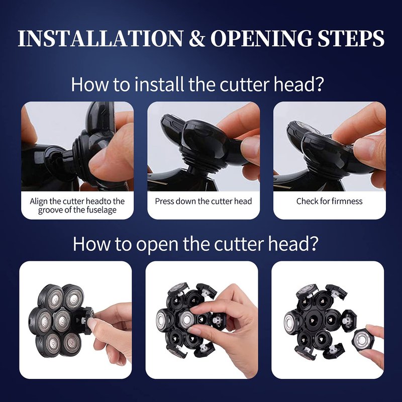 - Excellent Shaver Companion: Change the razor blade replacements for men regularly to get the high shaver performance. Use the replacement heads to replace the old or broken head of bald head shaver, allowing waterproof shaver to continue to achieve its perfect shaving function. Why not choose this way to save money?