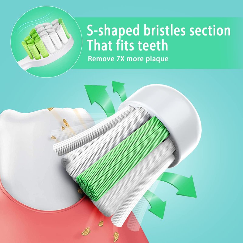 - Fits teeth & comfortable experience: Streamlined S-shape section of the bristles, which better fits the shape of the teeth, and effectively cleans the gaps and difficult-to-reach corners of the teeth without hurting your gum