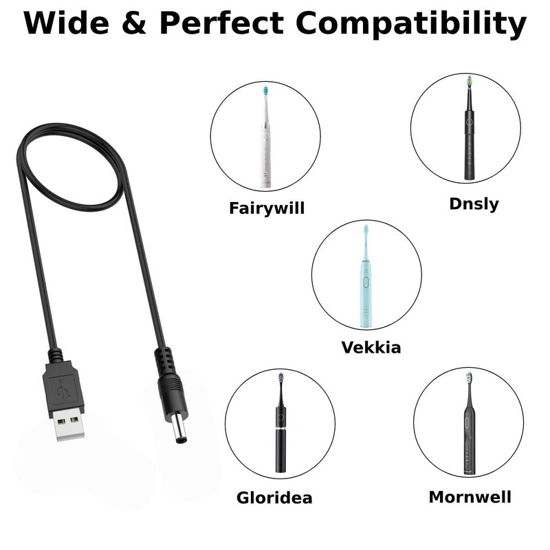 【Perfect Compatibility】Professional USB Charging Cable, Compatible Most Electric Toothbrushes Which are DC 3.5mm Port.