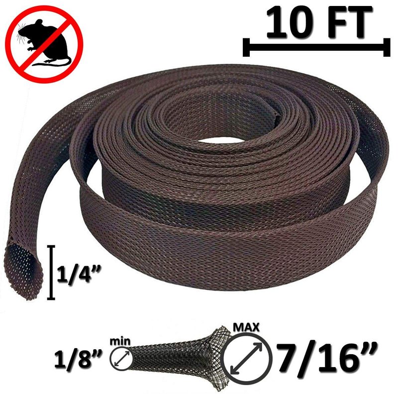 Electriduct 1/4" Chewing Resistant Braided Sleeving Repulsive Hose Wire Mesh Cable Protection Flexible Expandable Wrap - 10 Feet