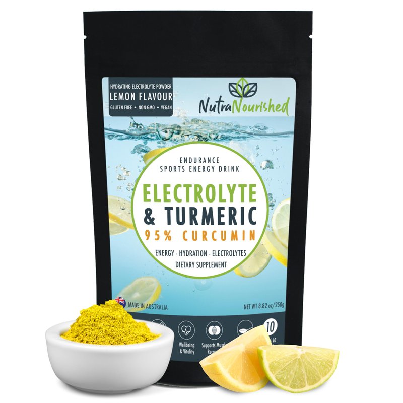 Electrolyte Powder Infused with 95% Pure Organic Curcumin from Turmeric - Sports Energy Drink Mix - Hydration Powder Sugar Free - Lemon Flavor turmeric drink - 250g
