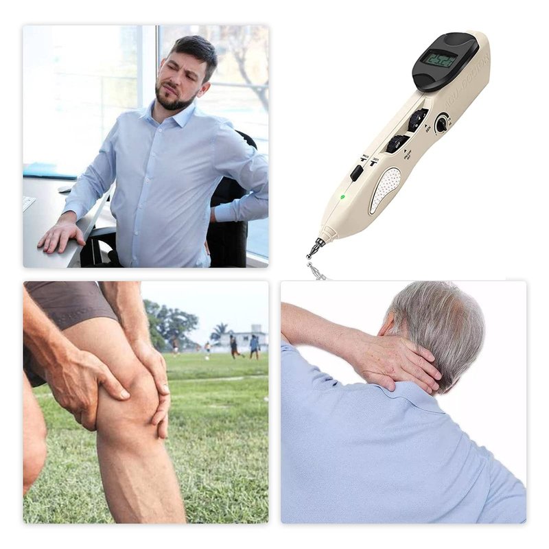 - NO NEEDLES & EASY TO USE:Simply press the massage tools on the affected area, and it will release a proper pulse to the meridian and acupuncture points, improving blood circulation and pain relief. There are no needles needed so it is not only painless but the skin is never even punctured at all, making it safe to use at home. Come with a user manual that has several charts about the body's therapeutic acupoints showing where to use the massage pen.