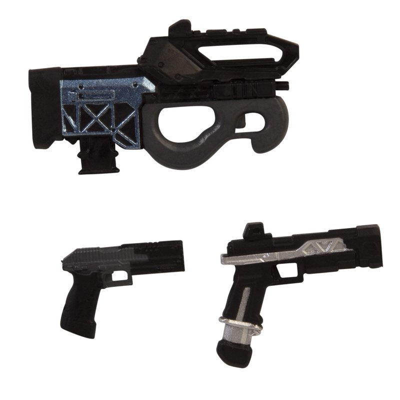 - Each poseable figure has 25+ points of articulation, in-game detail and a weapon holder on their back