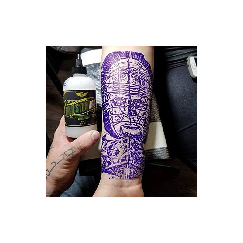 - {Locks your Stencil in Place} Nothing is more frustrating than having your tattoo stencils rub off! Electrum tattoo stencil transfer lotion was designed by a group of veteran tattoo artists to create dark, bold transfers that last a long time.