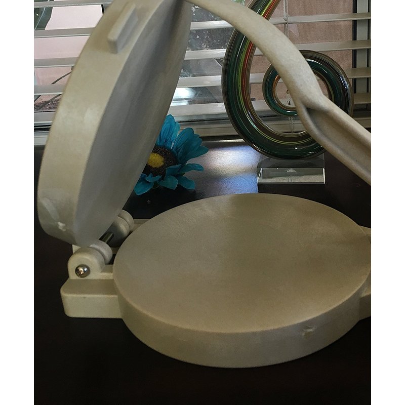 Tortilla Press with gift box White high impact plastic. Portable, can be used anywhere Leveraged handle; Manual operation Easy to Clean, dishwasher safe Easy to assemble; Ideal for making fresh tortillas. Lightweight and practical