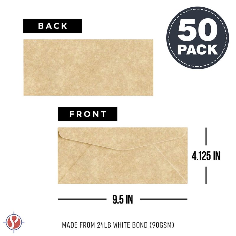 Elegant Aged Parchment #10 Business Envelopes – Great for Invitations, Greetings, Holiday, Office, Invoices, Letters, Mailings | 4 1/8 x 9 1/2 Inches | 50 Per Pack