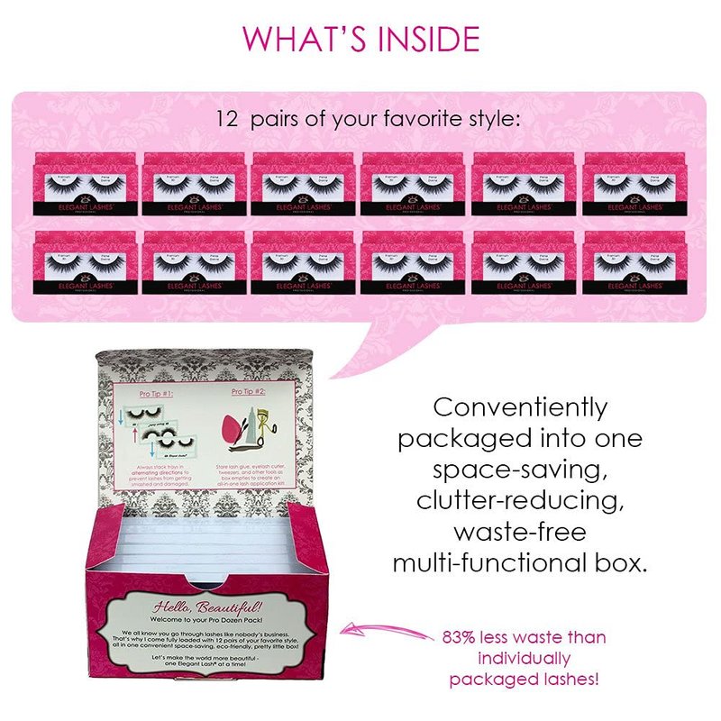 - 12 pairs of professional-use ultra-thick, ridiculously long drag false eyelashes in one ultra-portable, travel-friendly, multi-functional box!