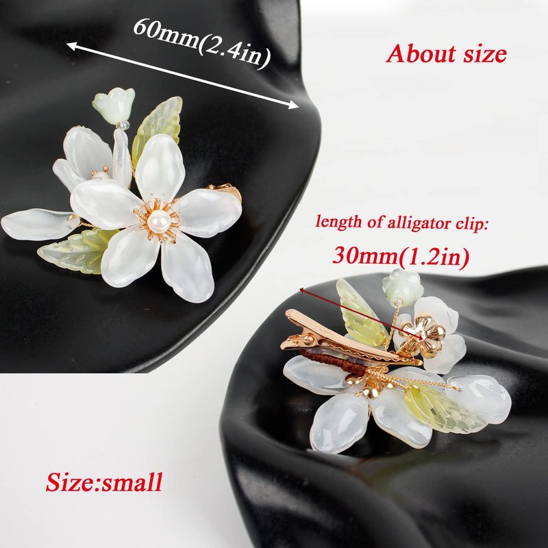 - ✮【Delicate flower hair barrettes】This is a small-sized hair barrette, measuring 2.4 inches in length, which is very delicate. The shape of the white magnolia vividly showcases the beauty of nature.
