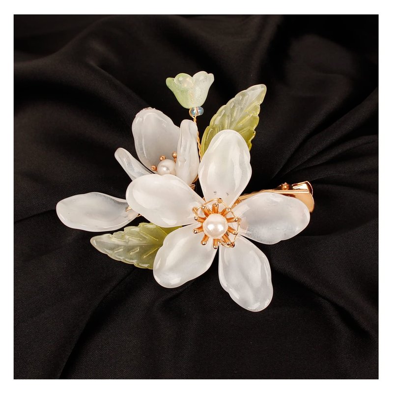 Delicate flower hair barrettes.This is a small-sized hair barrette, measuring 2.4 inches in length, which is very delicate. The shape of the white magnolia vividly showcases the beauty of nature.
