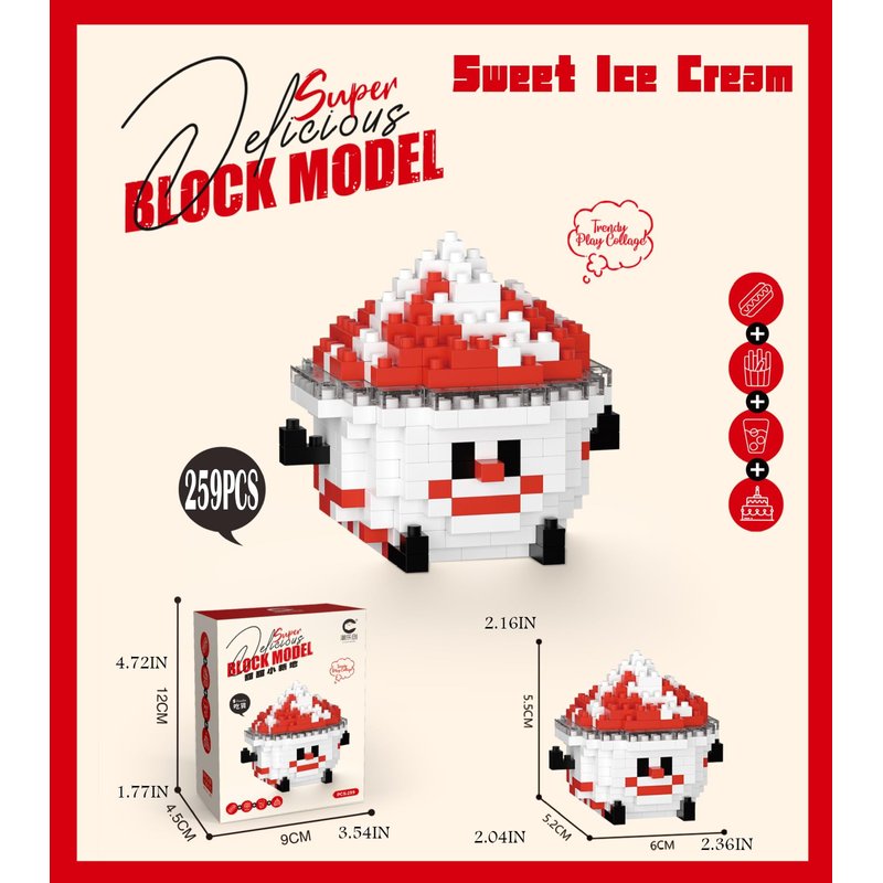 Elegrafy Happy Food Cute Food Series Mini Bricks Micro Building Kit Toys Desktop Ornaments Compatible Nano Kids (Sweet Ice Cream)