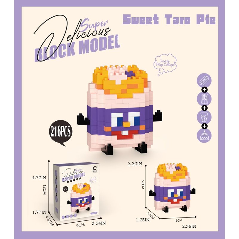 Elegrafy Happy Food Cute Food Series Mini Bricks Micro Building Kit Toys Desktop Ornaments Compatible Nano Kids (Sweet Taro Pie)