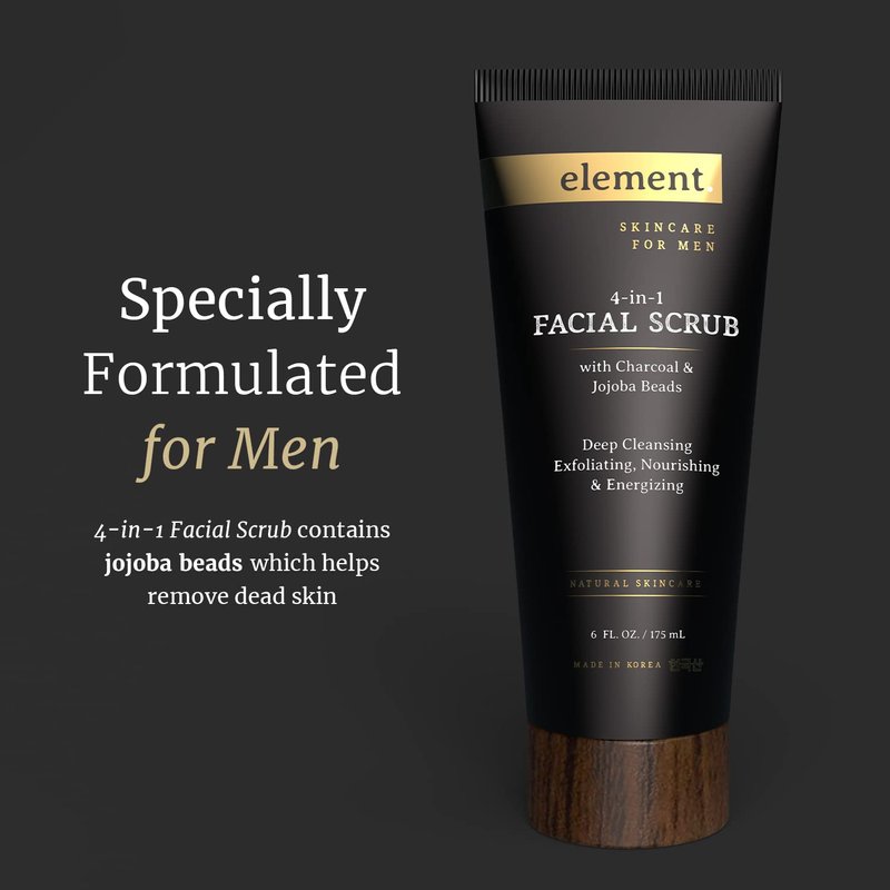 Element Charcoal & Jojoba Beads Men's Exfoliating Face Scrub - Removes Dead Skin Cells, Dirt & Impurities, Deep Cleansing Facial Scrub - Cruelty Free Korean Skin Care For All Skin Types