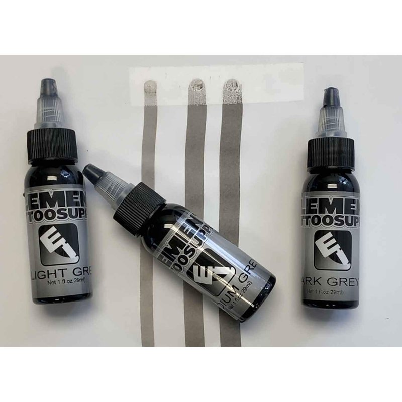 Gray Wash - Element Tattoo Ink Set, 3 shades Light Gray, Medium Gray and Dark Gray tattoo ink for shading..