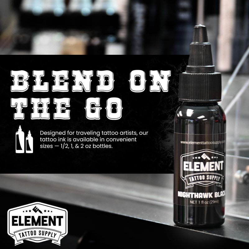 Element Tattoo Supply - Premium Black Tattoo Ink - Professional Tattoo Ink & Supplies for Outlining, Shading, & Blending - Tribal Tattoo Ink - Permanent Nighthawk Black Ink Tattoo - 1 oz Bottle