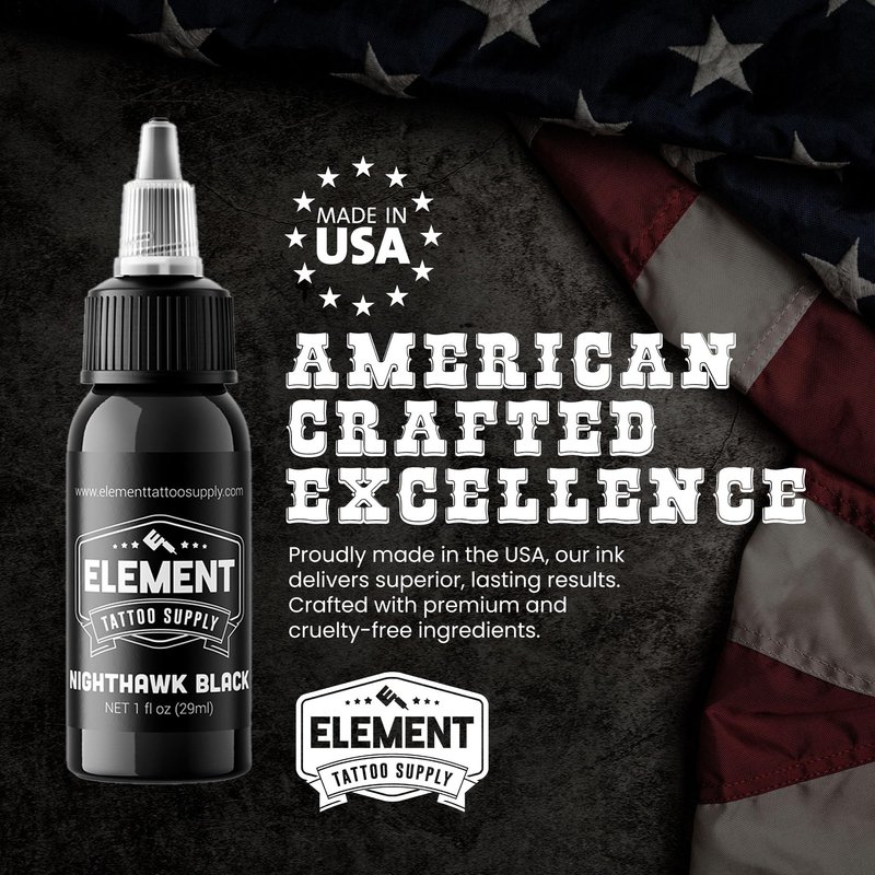 - UNLEASH YOUR CREATIVE POTENTIAL - Enhance your tattoo artistry with Element Tattoo Supply's USA-made black ink. Embraced by professionals and trusted by experts, it offers profound, opulent pigmentation for your best work.