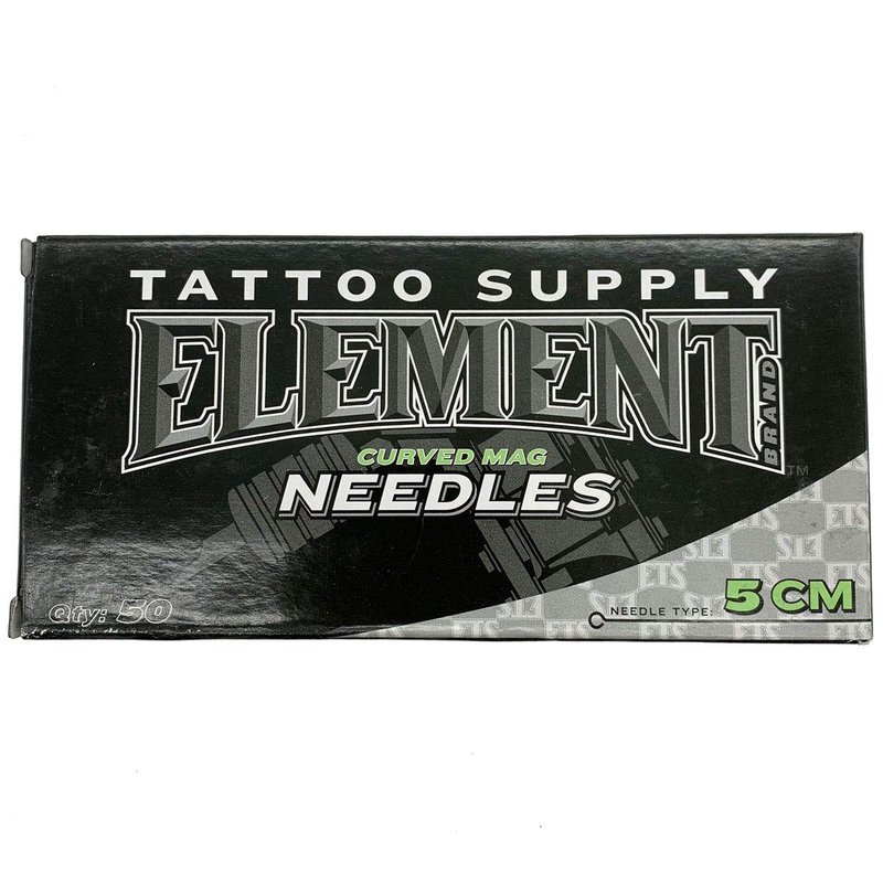5 Curved Mag Shader Element Tattoo Needles Box of 50 Element Tattoo Supply we only concentrate on quality tattoo needles so the tattoo artist using them does not have to. How do we know? We have not only sponsored worldwide tattoo artists using and trusted our products but we have been selling the best tattoo needles on the market since 2004. The same style needles the same great results. 5 CM Curved Mag Shader Tattoo Needle Long Taper Tattoo Needles Tradition needle on the bar with an eye loupe Box of (50) Size: #12 Diameter 0.35 Made of 304 medical stainless steel Size, Lot, Exp. date are all printed on each tattoo needle blister packed Each needle is a one time use and fully disposable Sterilized with E.O. gases *Compatible with any tattoo aluminum, plastic, and or disposable tubes on the market