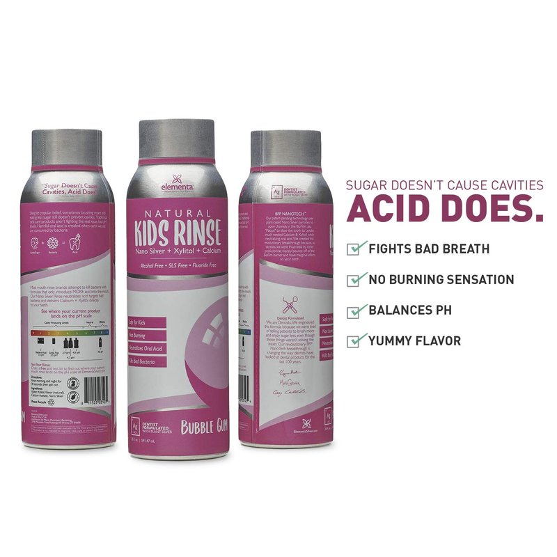 Elementa Essentials Kids Bubble Gum | Mouth Rinse Oral Care 20 oz | Dentist Recommended | Neutralizes Oral Acid | Fresh & Healthy Natural Mouthwash for Kids