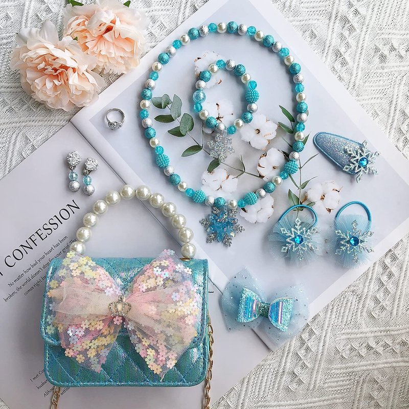- Excellent Gift: This adorable kids purse set is a perfect gift for little girls, The pretty jewel and hair accessories will make surprise and extra fun for them.