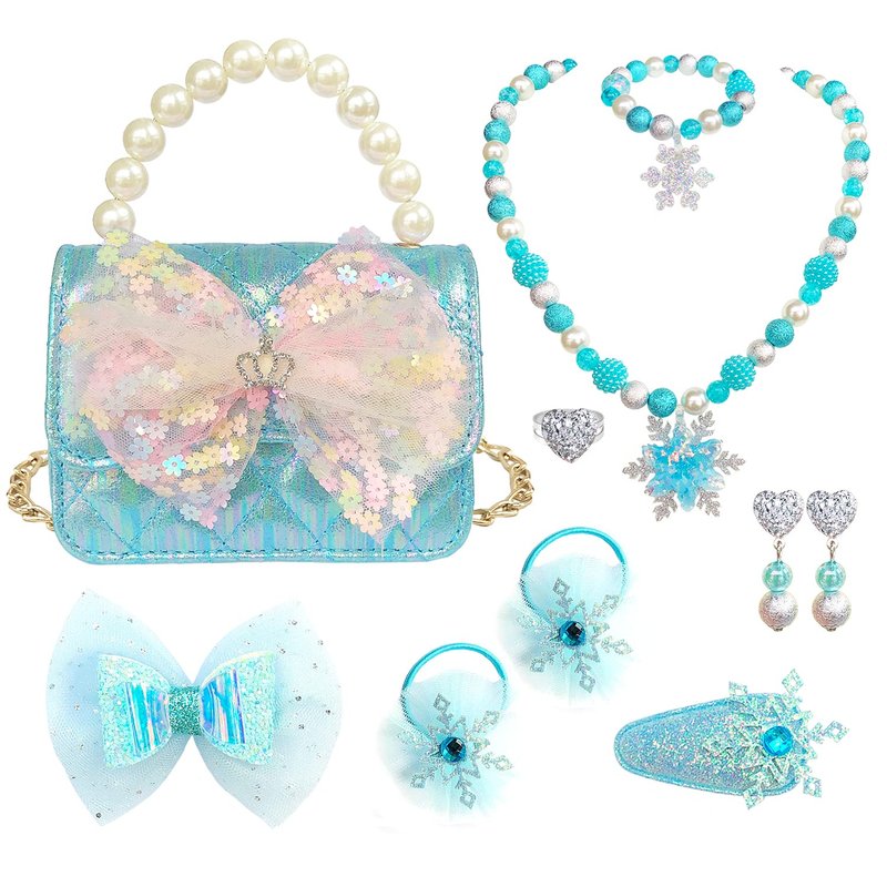 - Great Value Set: Comes with 1 handbag, 1 necklace, 1 bracelet, 1 pair of earrings, 1 ring, 2 hair clips, 2 hair ties, shown in picture.