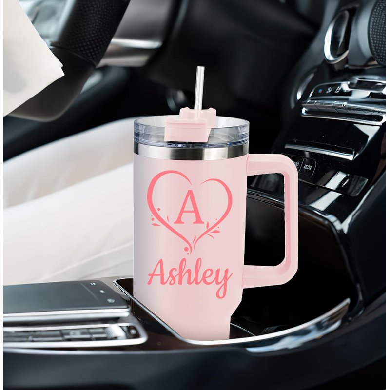 Elemtansy Personalized 40 Oz Tumbler with Handle and Straw, Custom Insulated Stainless Steel Tumbler with Name Travel Coffee Mug Birthday Gifts for Women Men