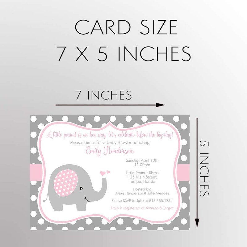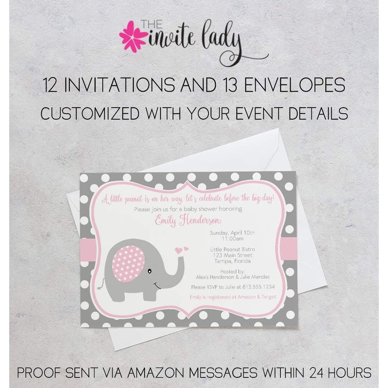 Elephant Baby Shower Invitations Pink Purple Gray Girl Polka Dots Invites Customized Personalized Printed Cards (12 Count)