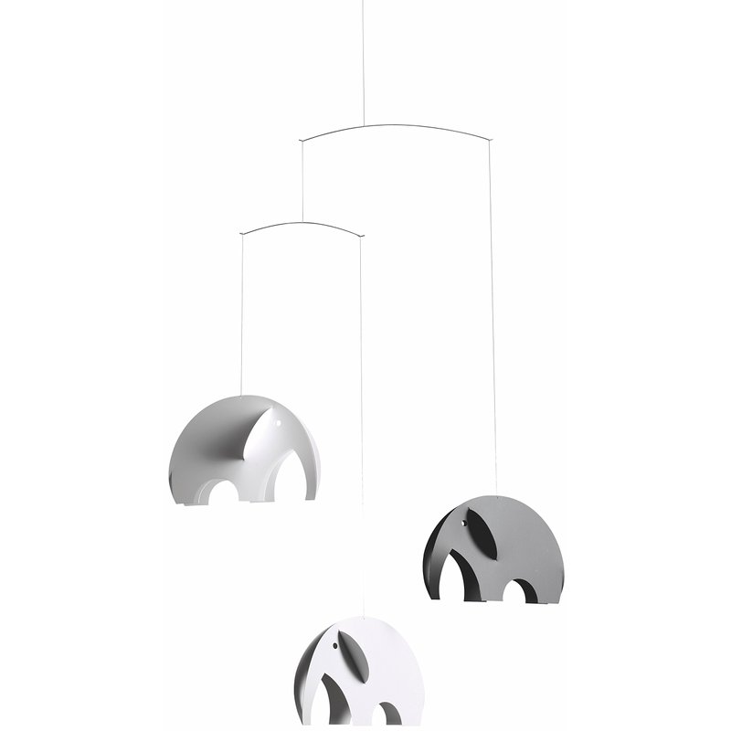 - This mobile is made by circles. The mobile is 3-dimensional and can be seen from below. With the ears of the elephant you open the mobile and keep it together with the trunk and tail. It is said that babies only see black and white until the age of 1 year, so this could be a great gift for a new-born.
